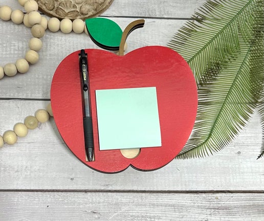 Introducing the perfect desk accessory for anyone with a love for both style and organization: the Apple-Shaped Post It Note and Pen Holder!