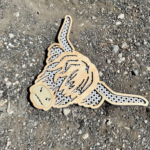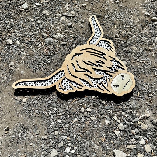 Bring a touch of rustic charm and farmhouse elegance into your space with this beautifully crafted Wooden Highland Cow Wall Art.Inspired by the iconic Scottish Highland cow, this intricately layered design blends natural wood tones with delicate cutout details, creating a striking focal point for any room.